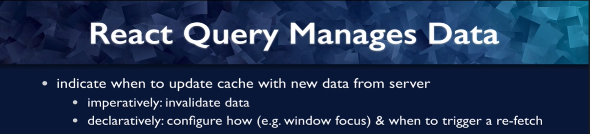 React Query manages the data and it is your job to indicate when you want to update the cache with new data from the server. You can do it imperatively by just telling the query