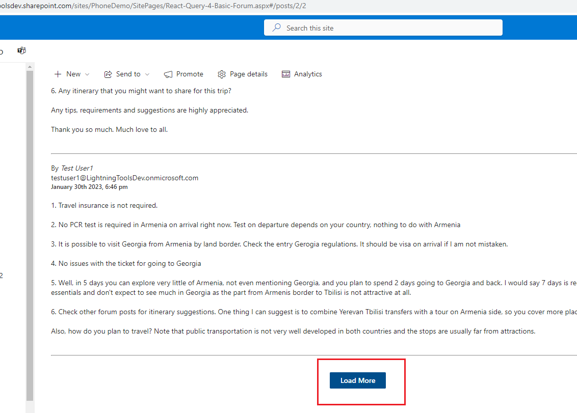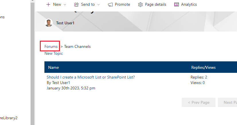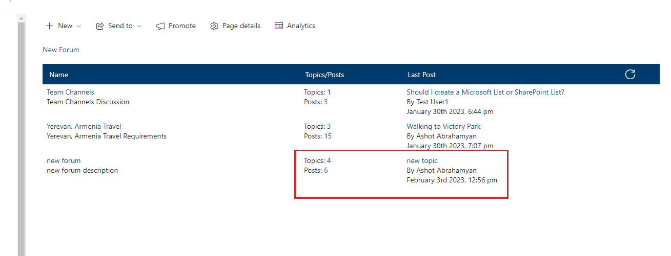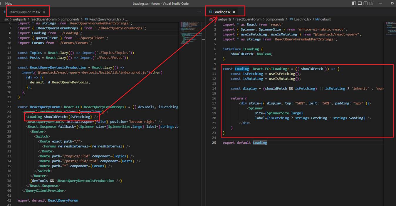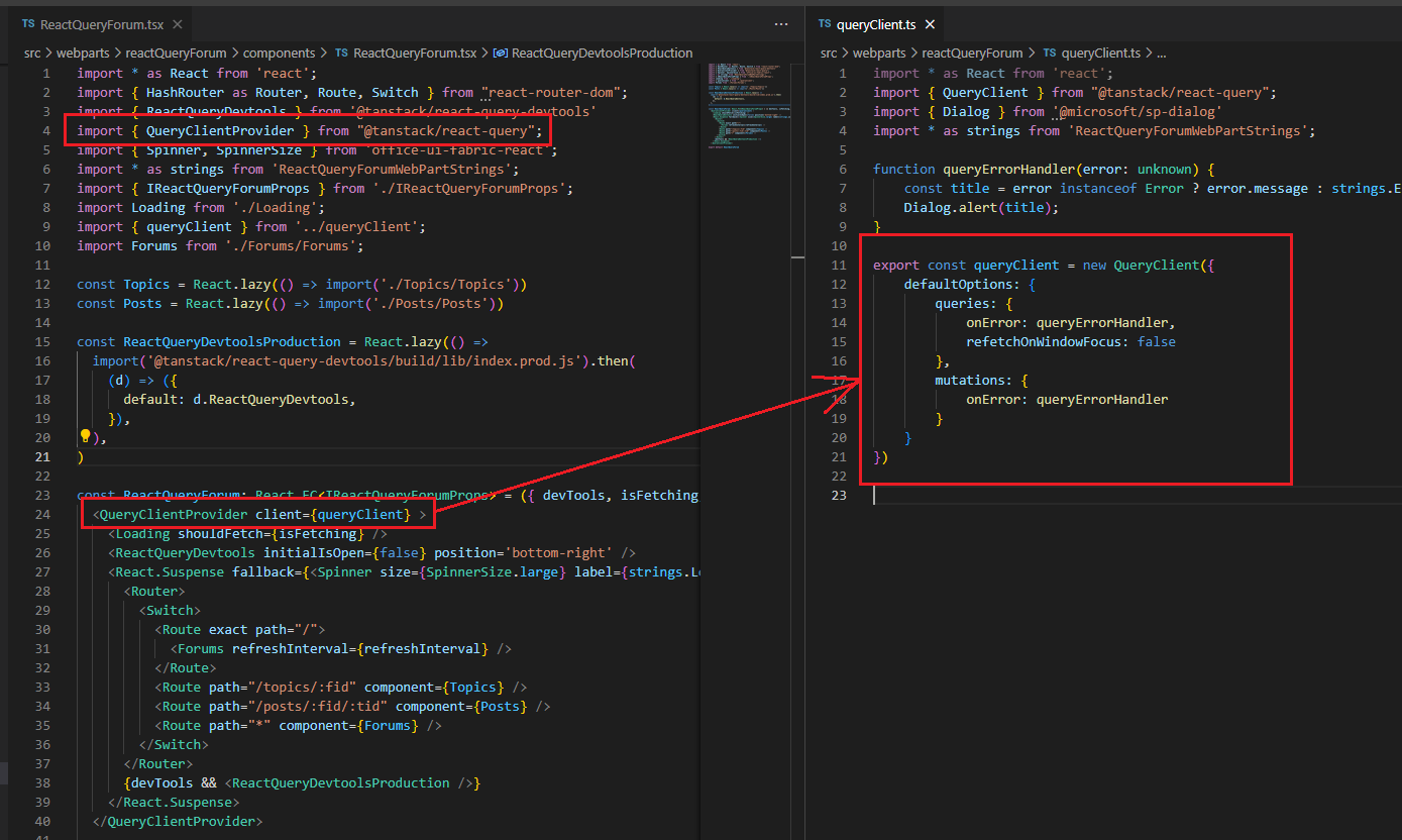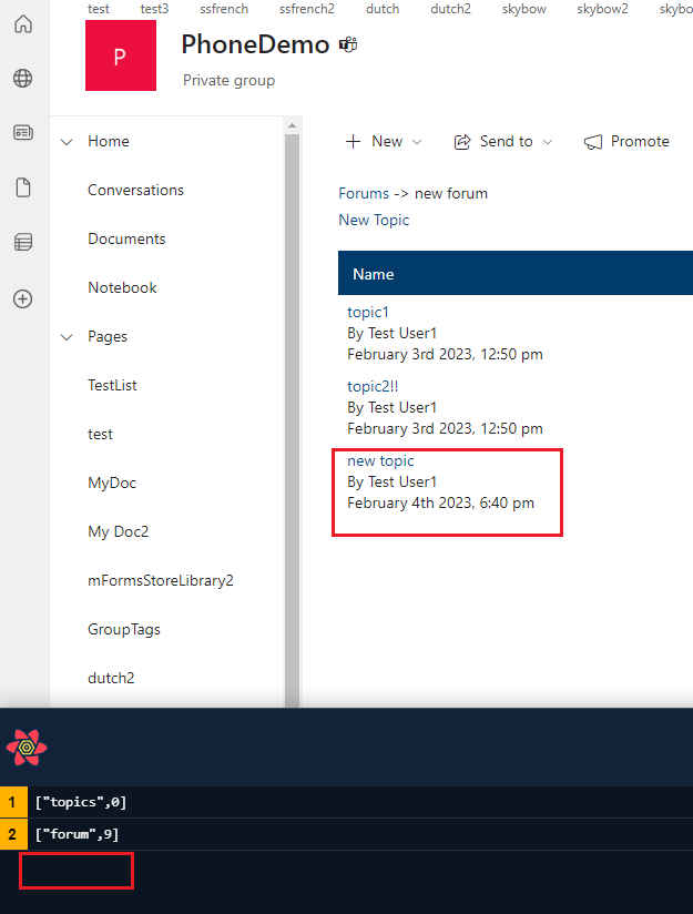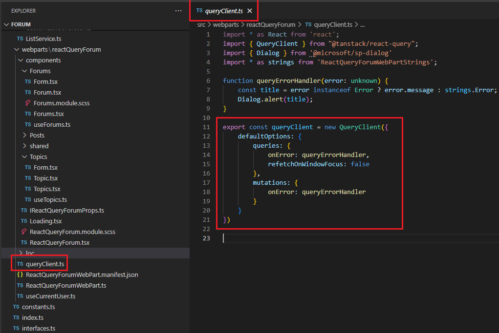 We define useForums hook and call it from the forums component to retrieve forums' from QR_Forums SharePoint list.