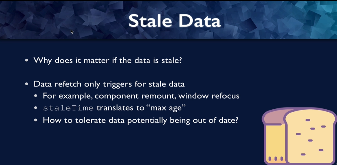 The next question is, why would the stale time default to zero? By defaulting to a stale time of zero, we are always assuming that the data is out of date