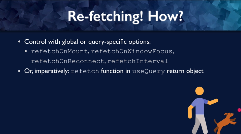 We can also apply the settings globally for all our queries and overwrite them with individual query options. refetchOnWindowFocus