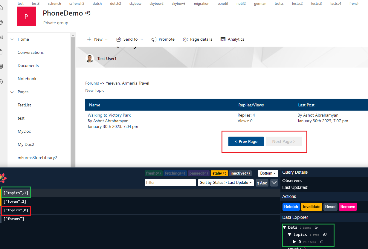 The important thing here is that we should assign a new key for each page data. If we load the first page then the key is ['topics', 0]