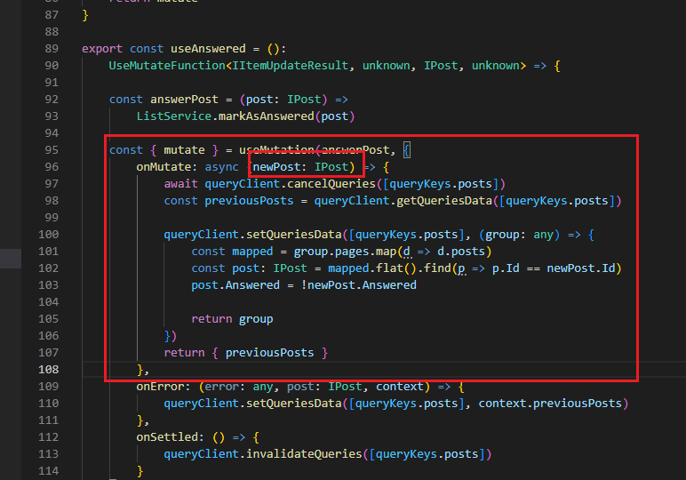 In our app a user can mark a post as answered or unanswered. In this case we are going to use optimistic update with react query. By optimistic we mean that we are