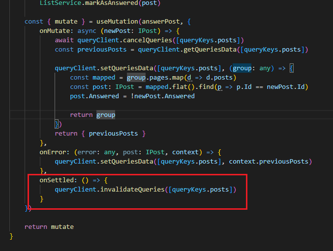 onSettled function is called when the mutation is either successful or when it encounters an error. In this function all we have to do is refetch posts.